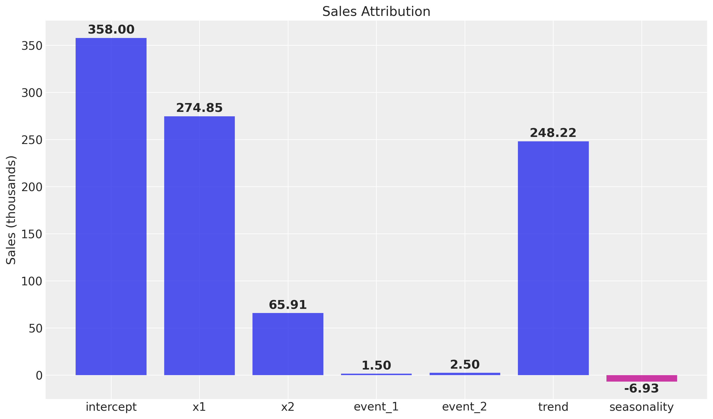 • Budget Optimization: Allocate your marketing budget based on the parameters recover by the model, finding the spend distribution to maximizes the amount of contribution given a limited budget. See Budget Allocation with PyMC-Marketing.