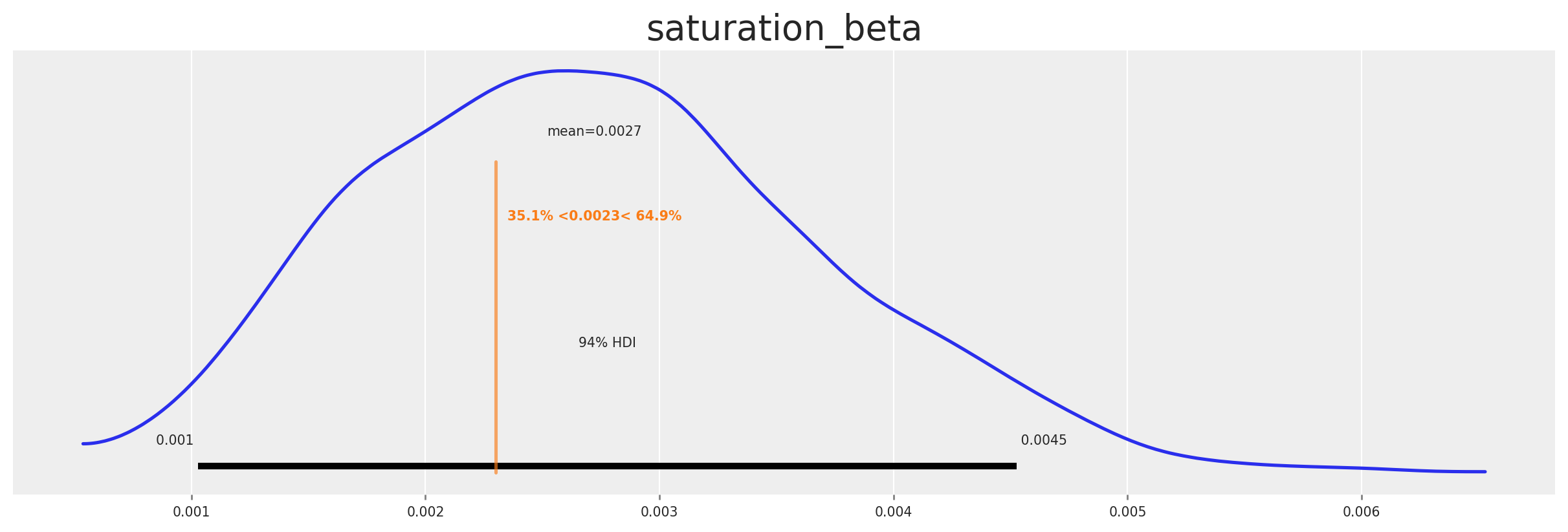 A PyMC-Marketing MMM with Geometric Adstock and Michaelis–Menten saturation for the outcome.